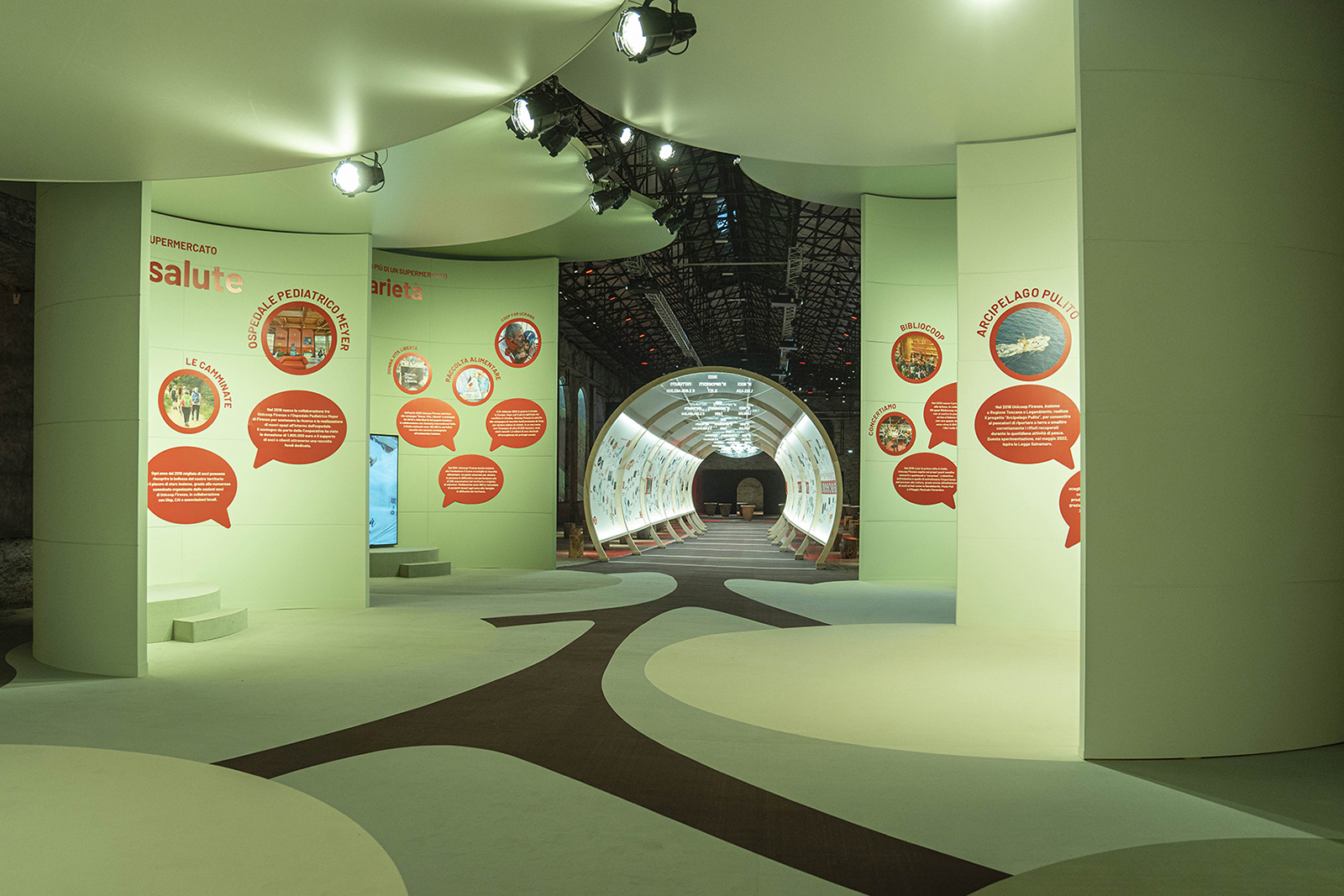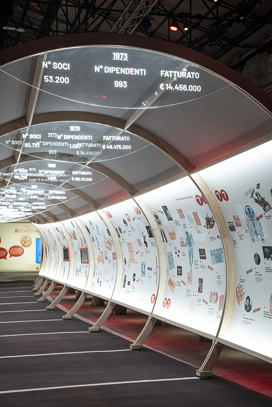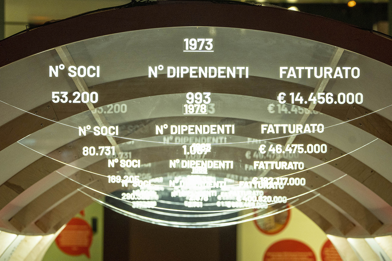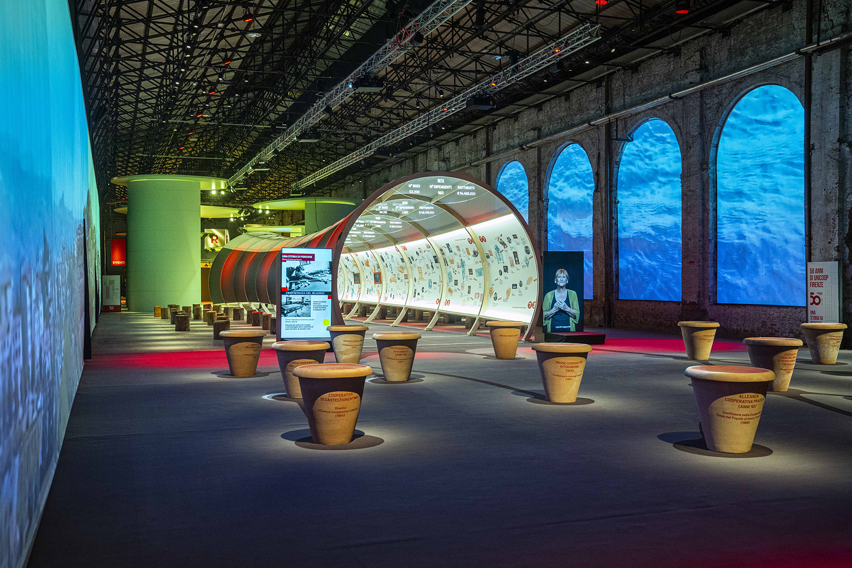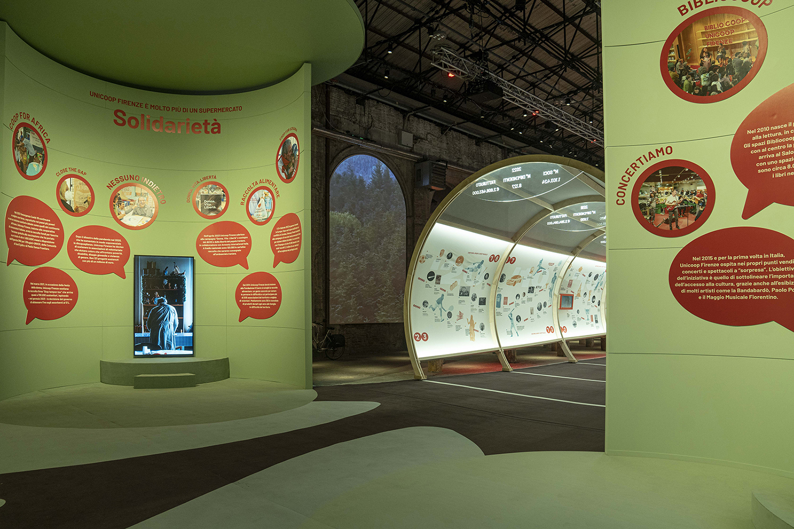 «We decided to tell the story of Unicoop Firenze by designing a big TREE: the metaphor for a solid living organism that still today, 50 years later, grows and provides nourishment, protection and solidarity to more than one million members throughout Tuscany. Like a tree, Unicoop has deep roots, which are the many cooperatives that have fed the dream of a reality that has reached the top of cooperation in Italy today; like a tree, Unicoop is supported by a trunk: our last 50 years of history, during which Unicoop has played a fundamental role in Tuscan society, ensuring well-being, work and the protection of consumer rights; like a tree, Unicoop Firenze has generated a large crown that tells how the future of cooperation in Tuscany is already in the present, thanks to the great themes of solidarity, culture, and environmental protection, of sharing, of quality never separated from convenience and love for its own territory».