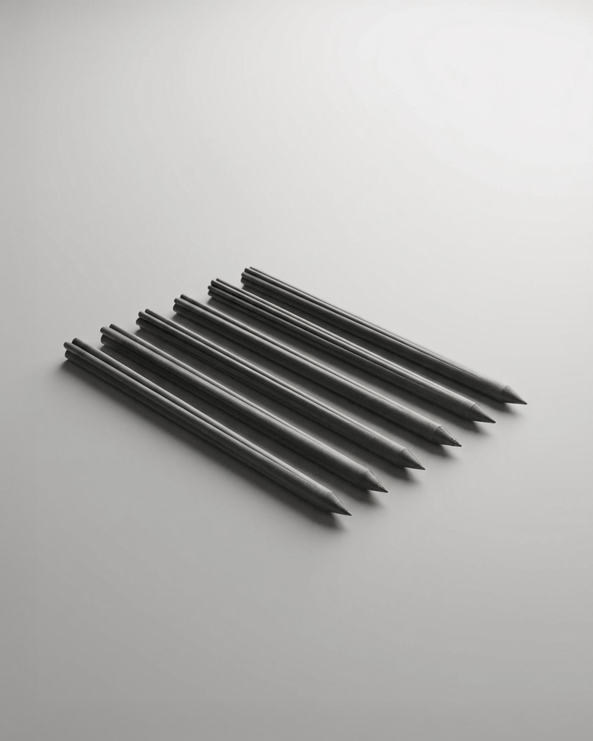 A geometry articulated through subtle variations in section, almost imperceptible differences that reshape its form. Like writing, which emerges from micro design deviations and leaves space only for what is worth remembering.